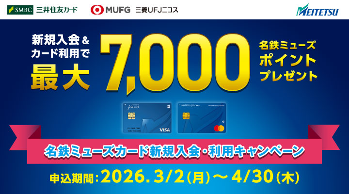 名鉄ミューズカードでは200円(税込)につき2ポイント、manacaでは200円(税込)につき1ポイント、 ご利用でポイントがたまります! 【終了】券売機でチャンス! manacaにクレジットチャージで50%ポイントプレゼントキャンペーン! 2025年12月01日~2026年02月28日 CentXアプリ ポイント5%還元! 宅配収納サービスを提供するトランコムDSが特典に追加されました 家事代行のベアーズが提示特典に追加されました 特別車チケットレスサービス 5%ポイント還元♪ manaca電子マネーを導入いただくことで事業者様に様々なメリットがあります。 売上アップに貢献する「manaca電子マネー」の導入をご検討ください。 2026年2月24日 システムメンテナンスのお知らせ 2026年1月13日 めいてつオンラインショッピング 一時休止とリニューアルのお知らせ 2025年12月18日 「ポイントで商品交換」における名鉄百貨店提供商品の掲載終了につきまして 2025年11月17日 ミュースターステーションのサービス終了につきまして 2025年10月21日 システムメンテナンスのお知らせ 盗難・紛失 Q&A お問い合わせ manacaへのポイント・ クレジットチャージ のご案内 スマホサイト ご案内 スマホアプリ